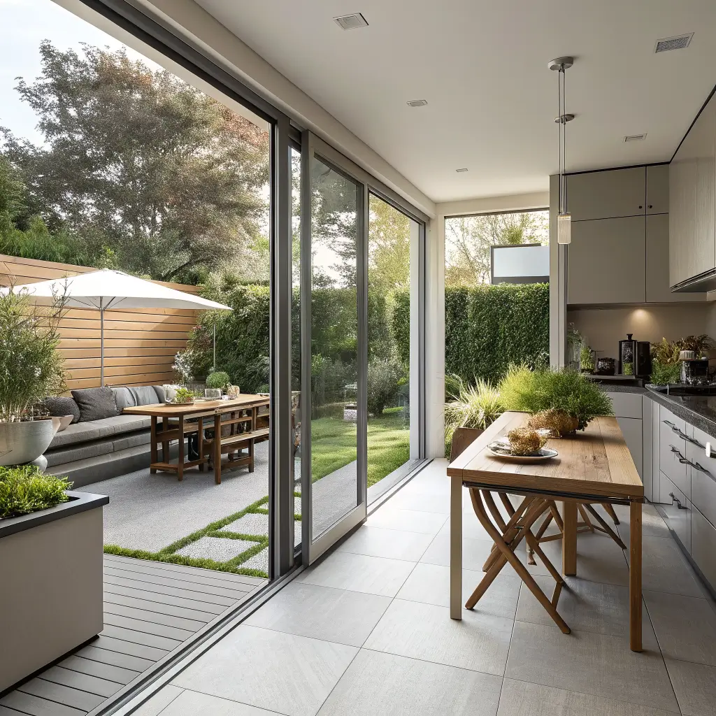 I installed sliding glass walls between my kitchen and patio, creating one massive space when opened. The indoor dining table aligns with the outdoor one, creating a 16-foot table for parties. Daily meals happen wherever weather feels best.