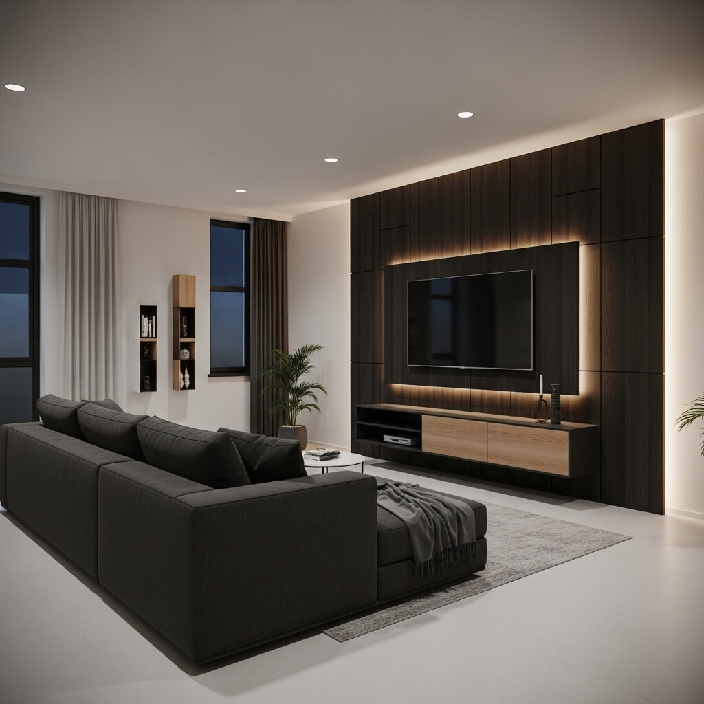 Add some ambiance with LED backlighting behind your TV (that subtle glow looks fantastic in the evening) and maybe some recessed lighting that you can dim during movie nights. Consider the glare from windows too—you might need blackout curtains or strategic sofa placement to avoid afternoon screen glare.