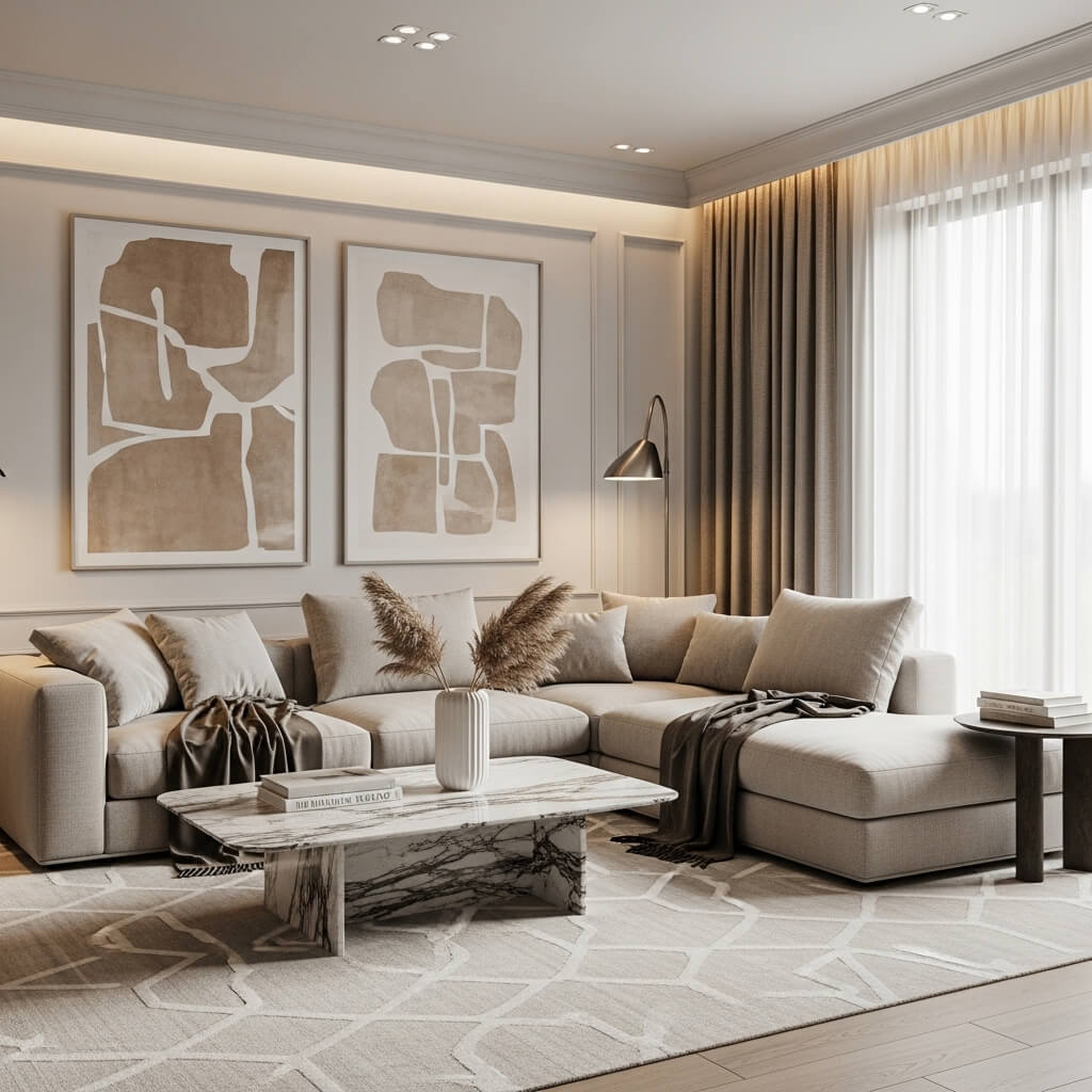 Elegant Neutral Tone L Shape Sofa Interior Design