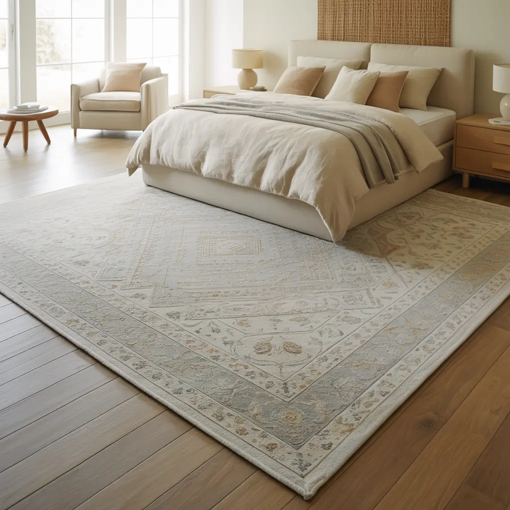 The magic number here is extending at least 2-3 feet beyond each side of your bed. This creates a defined sleeping zone and gives your bare feet something soft to land on in the morning. Trust me, cold floors at 6 AM aren’t fun.