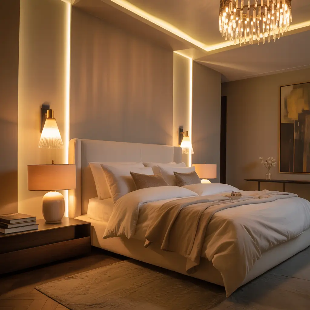 Think of lighting in three layers: ambient (general room lighting), task (for specific activities), and accent (for atmosphere). In my bedroom, that translates to a chandelier for ambient, bedside lamps for task, and wall sconces for accent. The combination lets me set whatever mood I want.