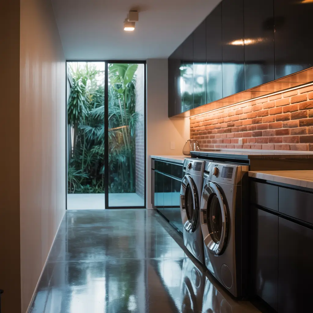 Sometimes the best flooring is no flooring at all. Polished concrete has this industrial-chic vibe that makes your laundry room feel like it belongs in a trendy loft. Plus, it’s practically indestructible – your grandkids will be doing laundry on the same floor.
