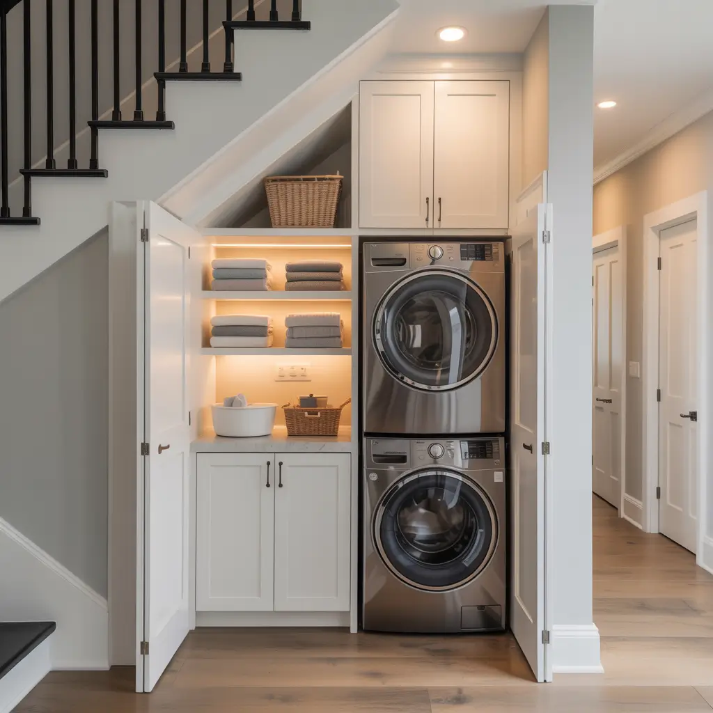 Got an awkward under-stairs space? Transform it into a laundry nook! It’s actually one of the smartest uses for that typically wasted area.