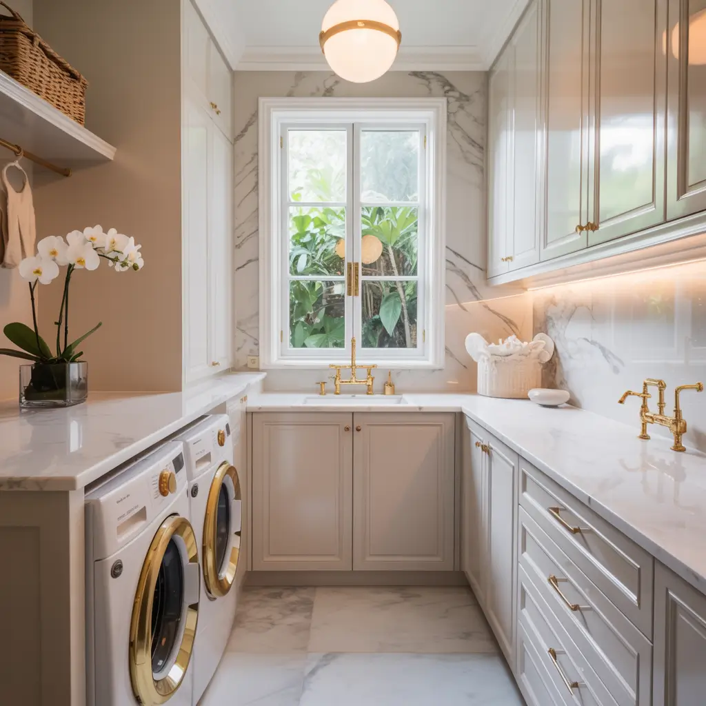 Real marble might be overkill for a laundry room (hello, maintenance!), but marble-look alternatives give you the aesthetic without the anxiety.