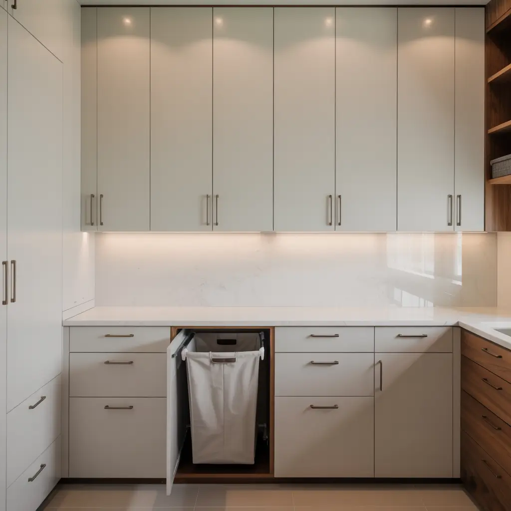 Remember playing hide-and-seek as a kid? Well, hidden pull-out hampers bring that same satisfaction to your laundry room. I discovered these beauties when I got sick of tripping over laundry baskets every time I entered the room.