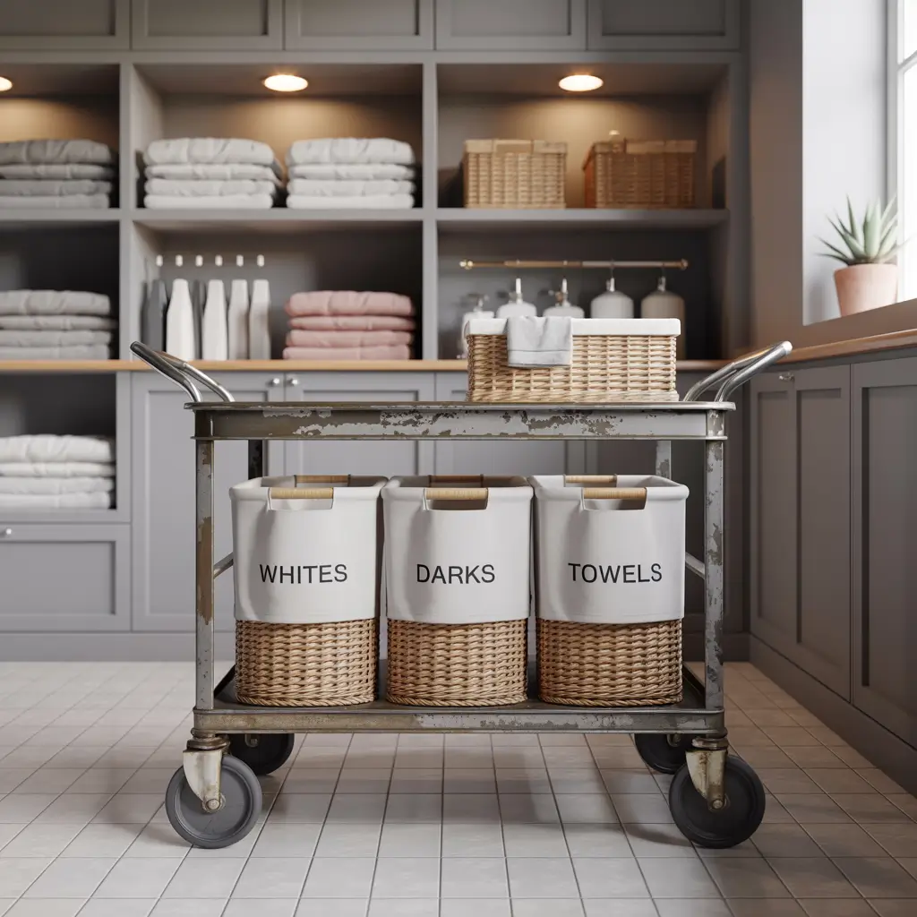 Ever tried carrying a full laundry basket up stairs? Yeah, not fun. That’s why I’m obsessed with my rolling laundry cart system. It’s basically a mobile command center for all things laundry.