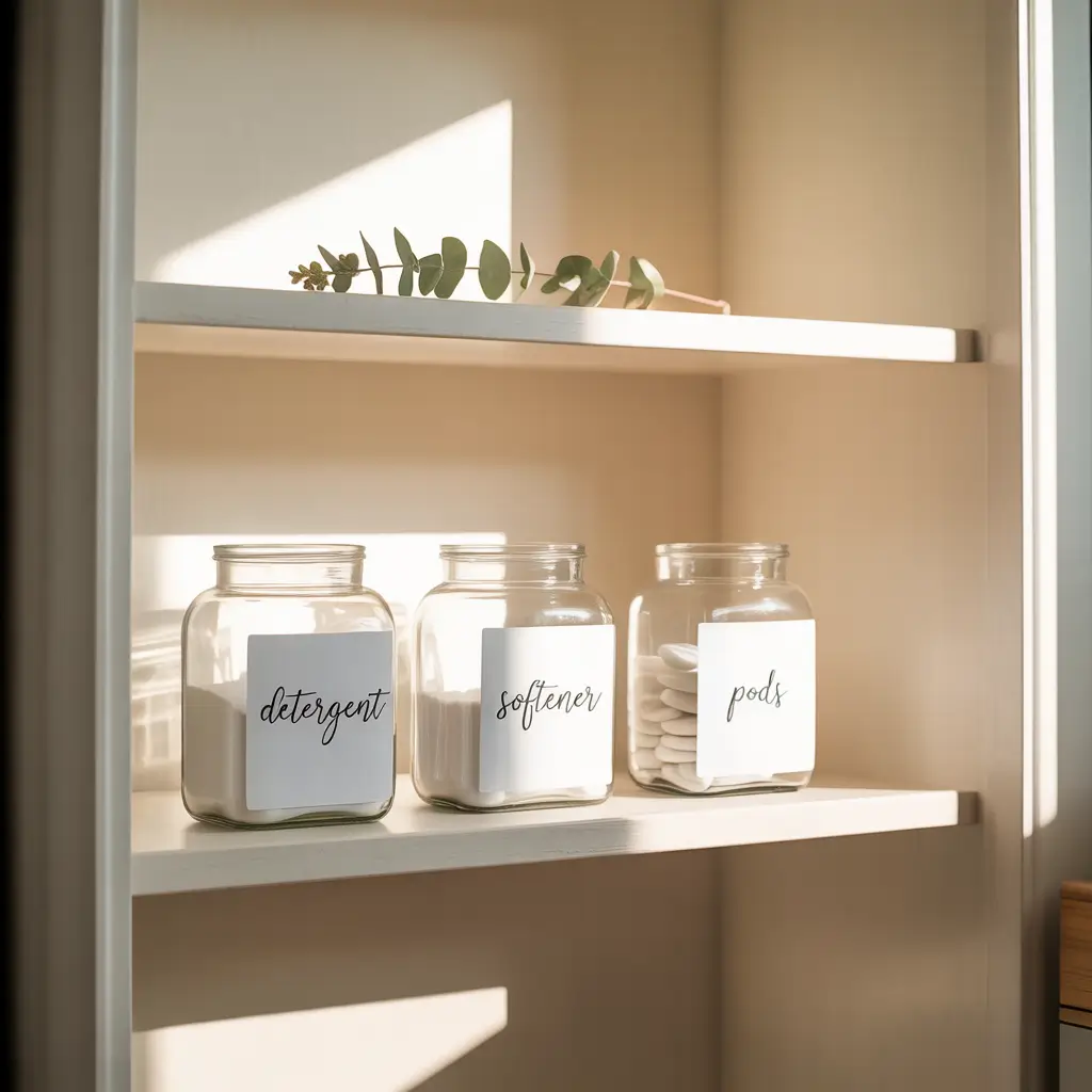 Remember when everyone went crazy for those aesthetic pantry jars? Well, I brought that energy to my laundry room, and I have zero regrets. Glass jars aren’t just pretty – they’re practical for storing laundry pods, powder detergent, and dryer balls.