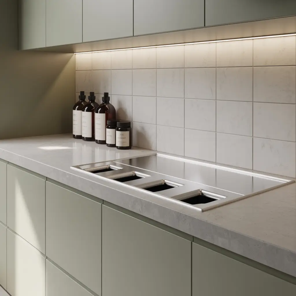 Creating a dedicated detergent dispenser area might sound fancy, but it’s actually pretty simple. A built-in dispenser setup keeps everything organized and prevents those annoying detergent drips on your machines.