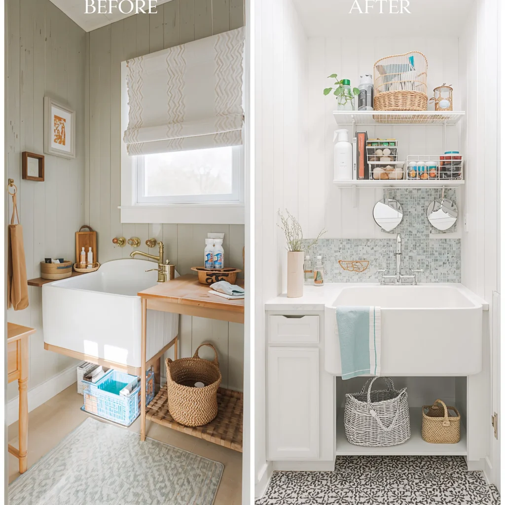Who says you need to drop thousands on a laundry sink upgrade? Some of the best transformations I’ve seen came from creative DIYers working with what they had. Paint, new hardware, and strategic accessories can work absolute miracles.