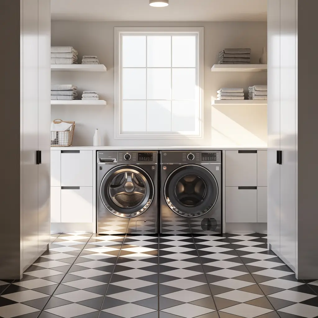 The secret to making a small laundry room feel bigger lies in choosing the right pattern. Diagonal layouts work wonders – they trick your eye into seeing more space than actually exists. I learned this trick when I helped my best friend tile her 5×7 laundry closet, and the transformation was mind-blowing.