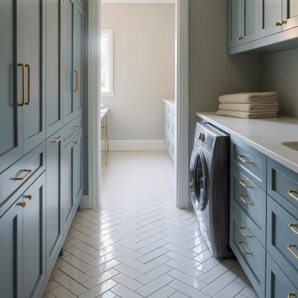 Herringbone Tile Laundry Room Layout