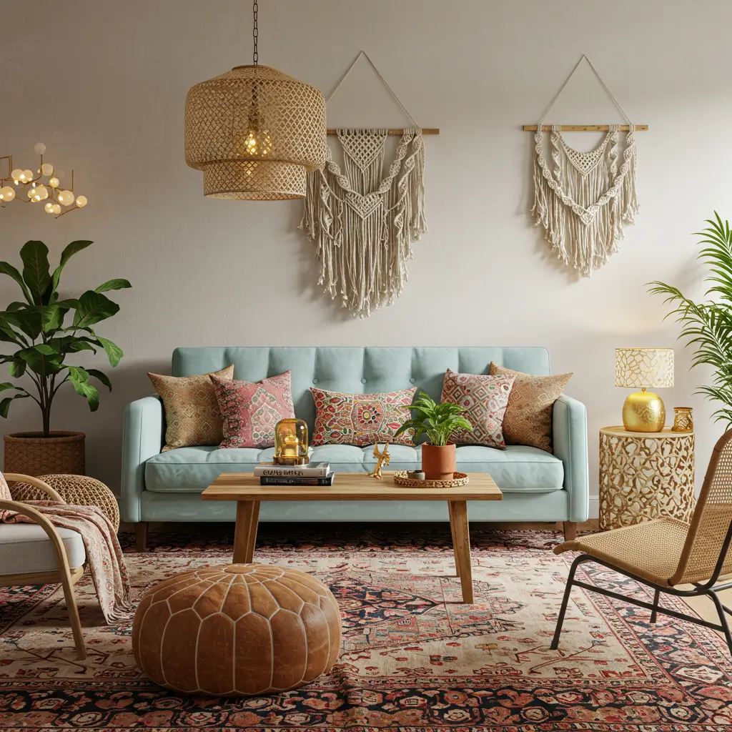 Start with the approach that excites you most. Add elements gradually. Don’t be afraid to mix ideas — maybe you want Scandinavian simplicity with a touch of boho warmth. Your light blue couch can handle it.