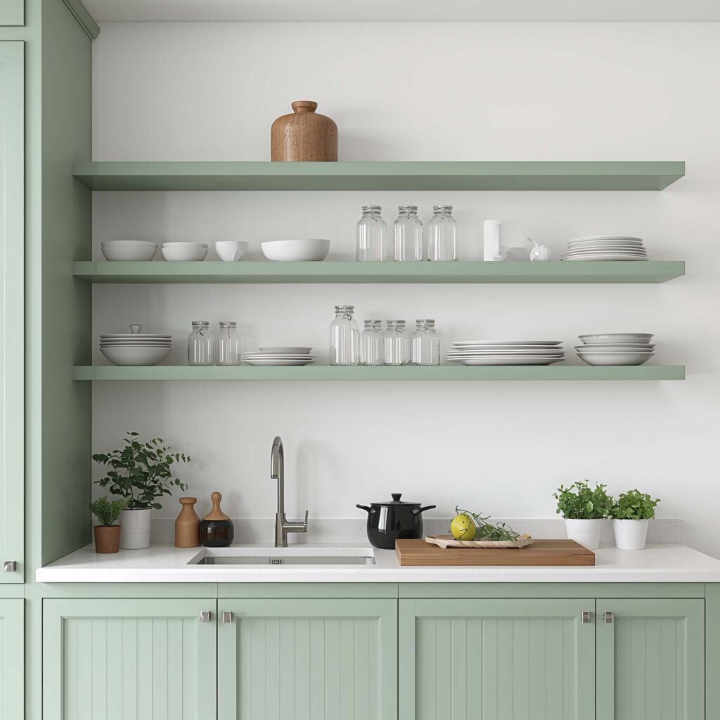 Soft Green Open Shelving