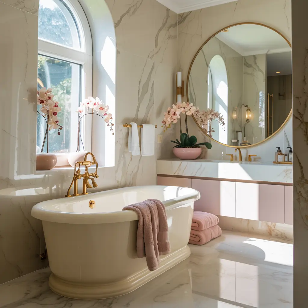 Pro tip: If you’re nervous about too much pink, use blush tiles just in the shower or as a backsplash. You get the impact without the commitment.