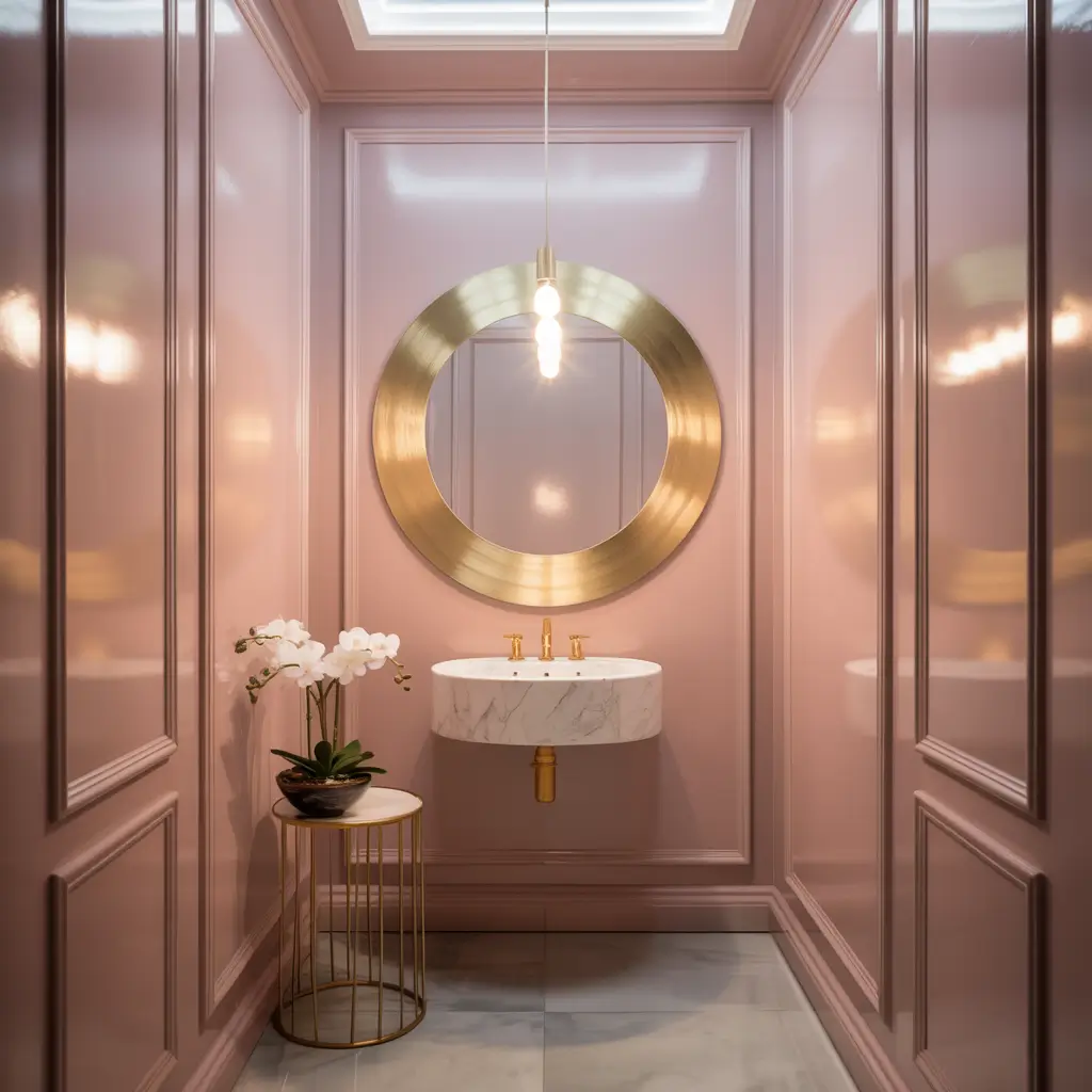 Last month, I visited a friend whose powder room literally made me gasp. Pastel pink grasscloth wallpaper, an ornate gold mirror, and a crystal chandelier – it sounds like too much, but in a small space? Absolutely perfect.