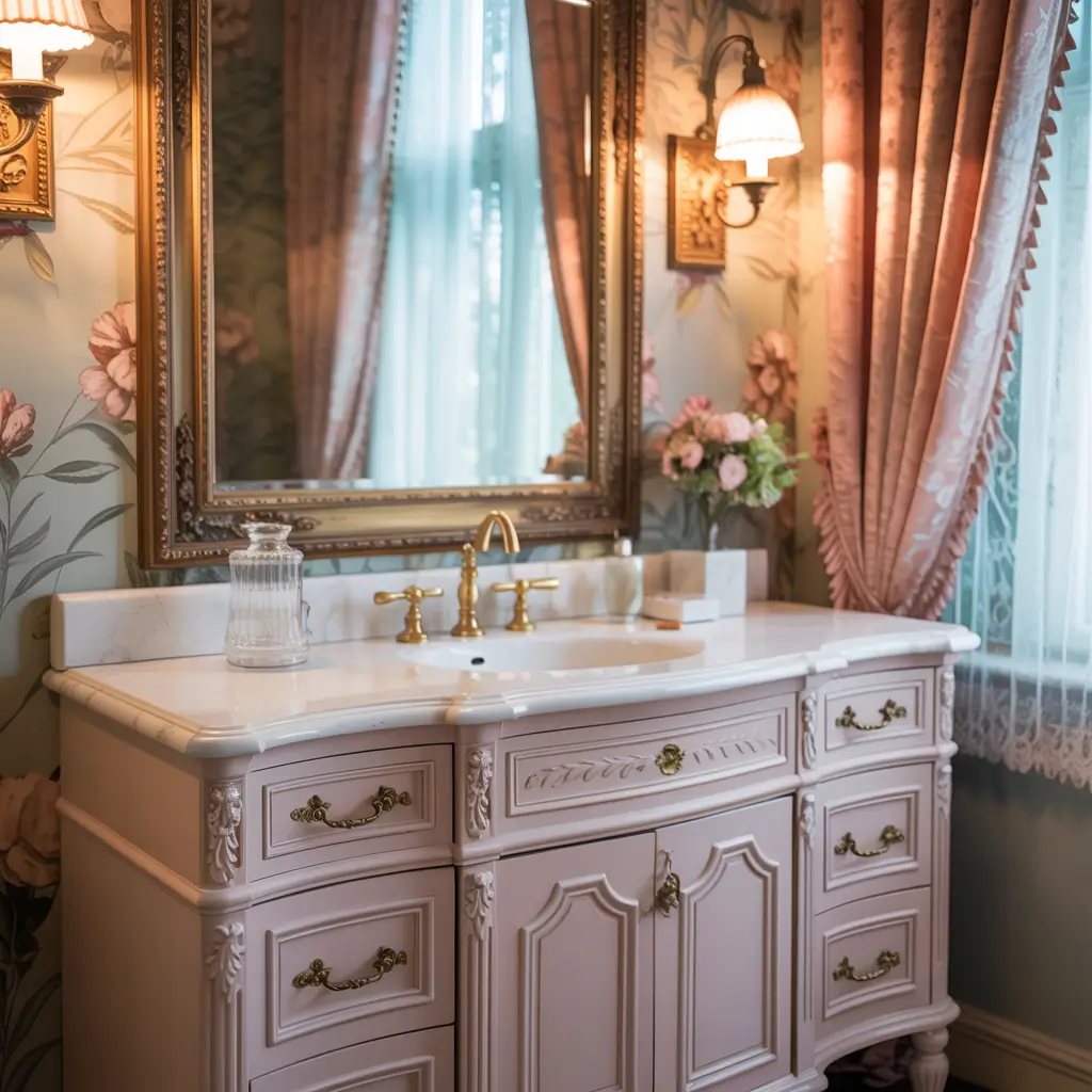 I scored an incredible 1940s vanity at an estate sale, had it professionally painted in the palest pink, and honestly, it’s become the star of my guest bathroom. The curved legs, the original hardware – it all adds character that you can’t buy at a big box store.