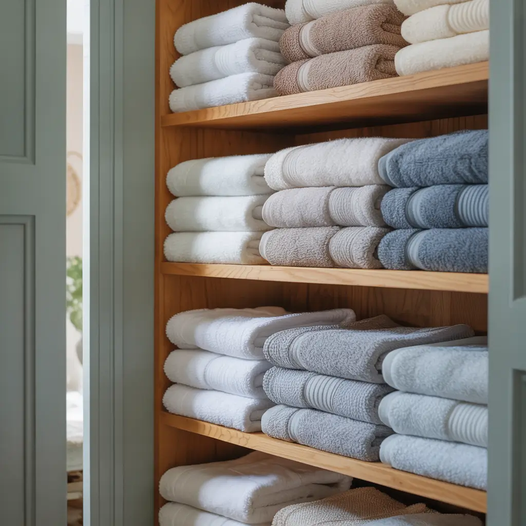 The stacking part matters too. I keep bath towels on one shelf, hand towels directly below, and washcloths in a small basket on the same shelf as hand towels. Each color group stays together, stacked with the fold facing out so everything looks uniform. Sounds anal-retentive? Maybe. But you know what? I can grab a complete towel set in the dark now.