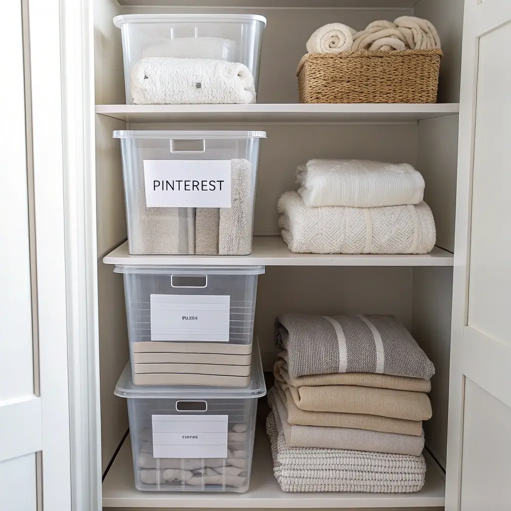 Transparency is everything when organizing linens. I switched to clear plastic bins for seasonal items and spare bedding, and it’s eliminated the “mystery box” syndrome where you forget what you own. Now I can see that holiday tablecloth without opening three bins first.