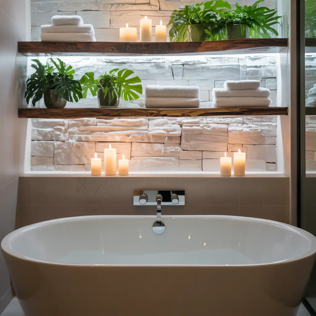 Bathroom Spa-Style Live Edge Shelves: The Organic Oasis