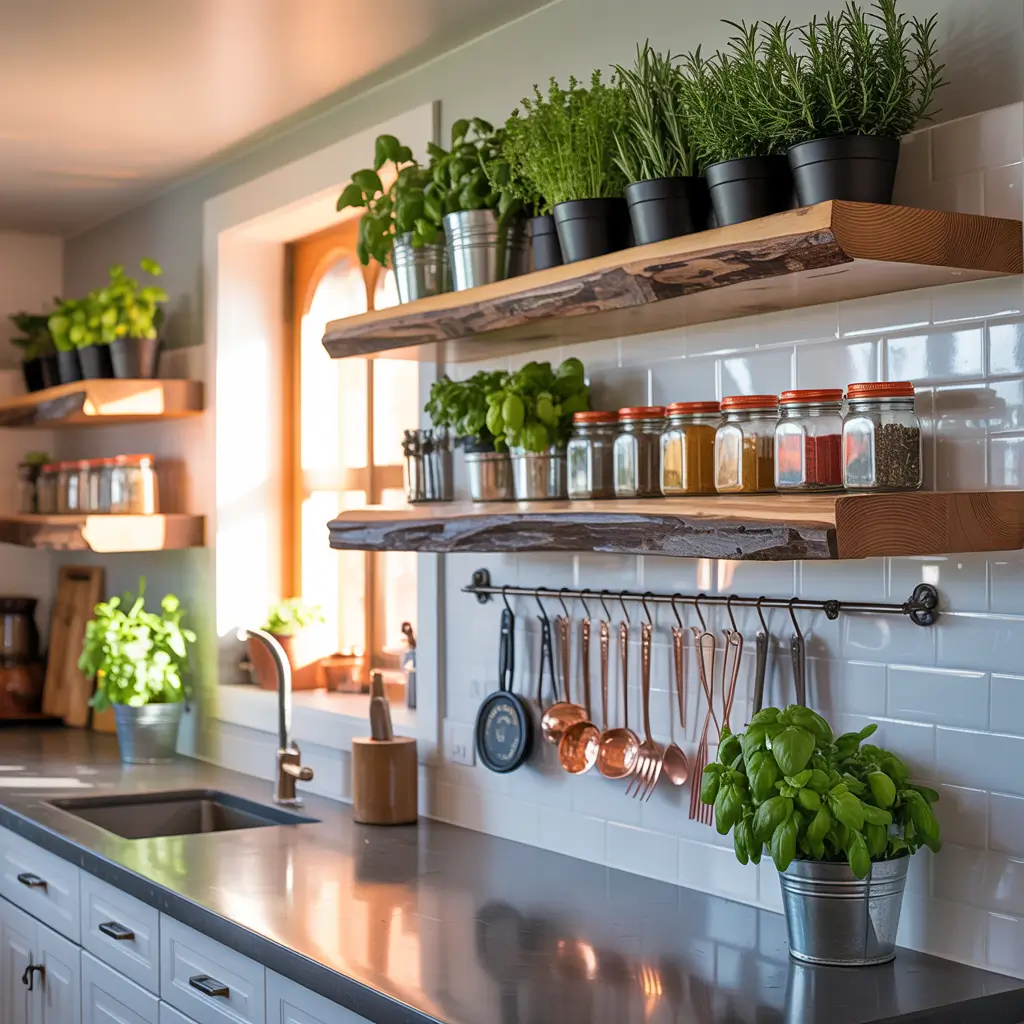Floating Kitchen Herb Live Edge Shelves: The Functional Beauty