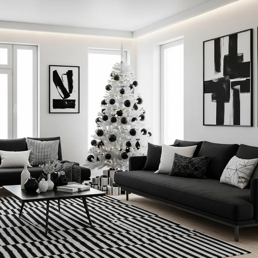 Black and white Christmas decor makes a bold statement. This high-contrast palette feels fresh and sophisticated, perfect for those who find traditional colors too sweet.