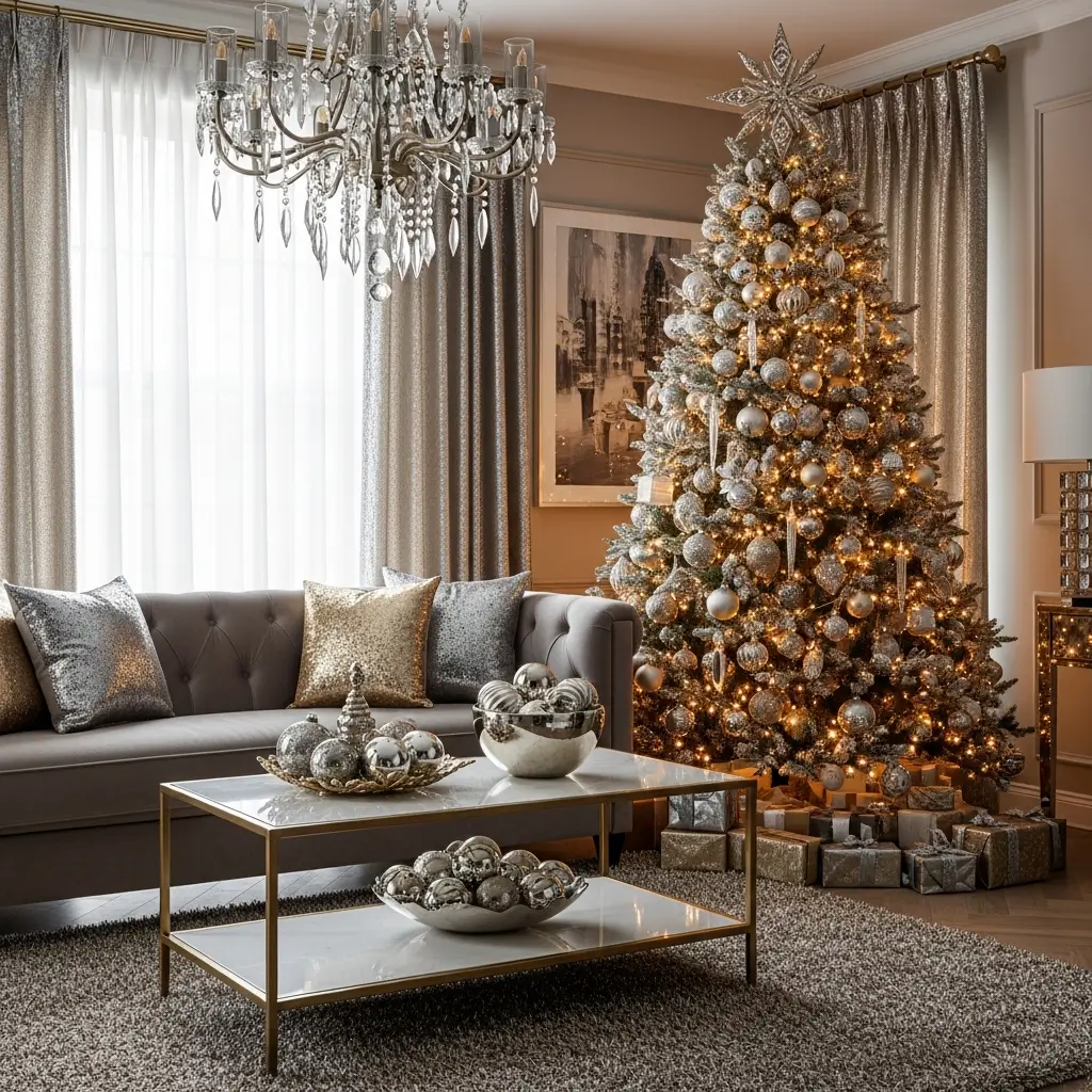 Ready to go full glamour? Metallic Christmas decor turns your living room into a luxe wonderland that catches and reflects light from every angle.