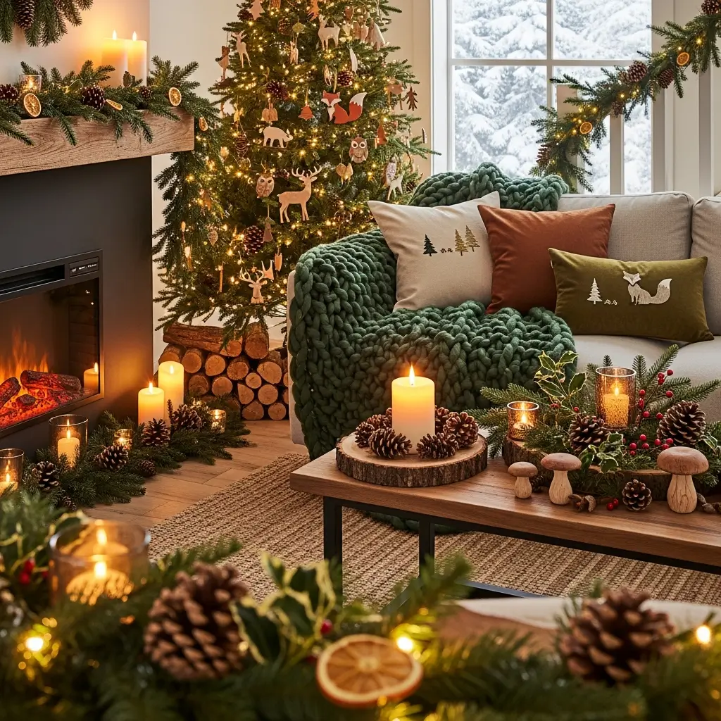 Bring the forest indoors with woodland-inspired Christmas decor. This nature-focused approach makes your living room feel like an enchanted winter forest.