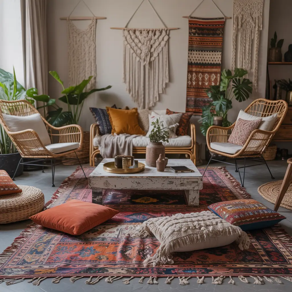 Start with a neutral base – beige sofa, white walls, natural wood furniture. Then go crazy with textiles. I’m talking multiple throw pillows in different patterns, a vintage rug layered over a jute rug, macramé wall hangings, and throws draped everywhere. The key is controlled chaos – stick to a color palette (earth tones work best) so it looks curated, not cluttered.