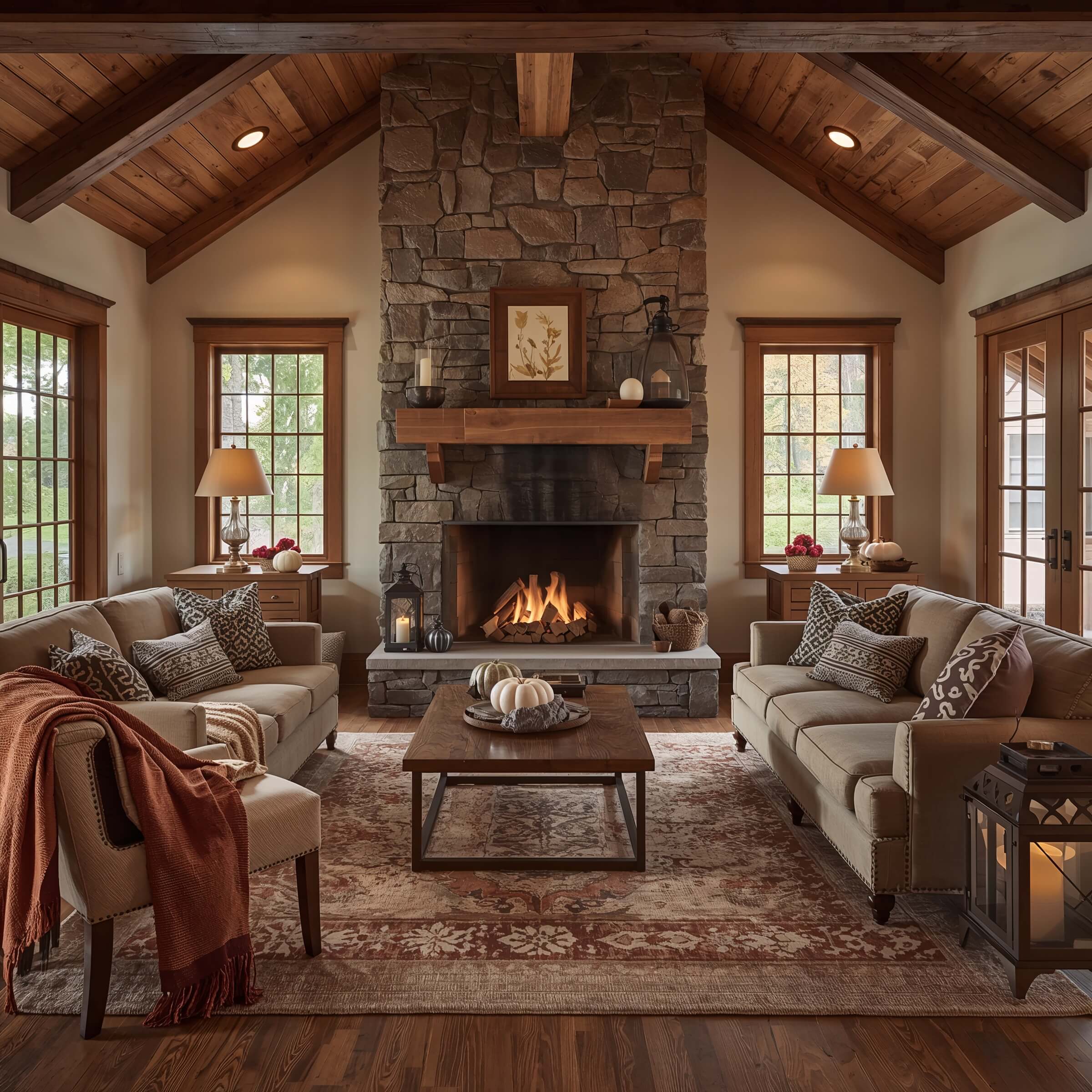 A cozy rustic living room fireplace usually mixes natural textures, earthy colors, and vintage-inspired pieces. The goal is comfort, not perfection.