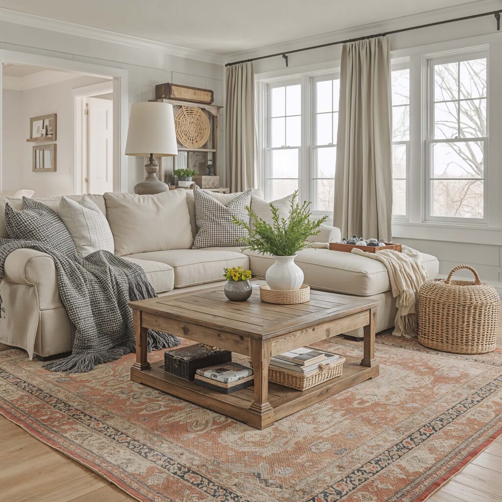 Nothing says “come curl up with hot cocoa” quite like farmhouse style. This look brings all the warmth without making you feel like you’re living in an actual barn. The magic happens when you mix rustic elements with modern comfort.