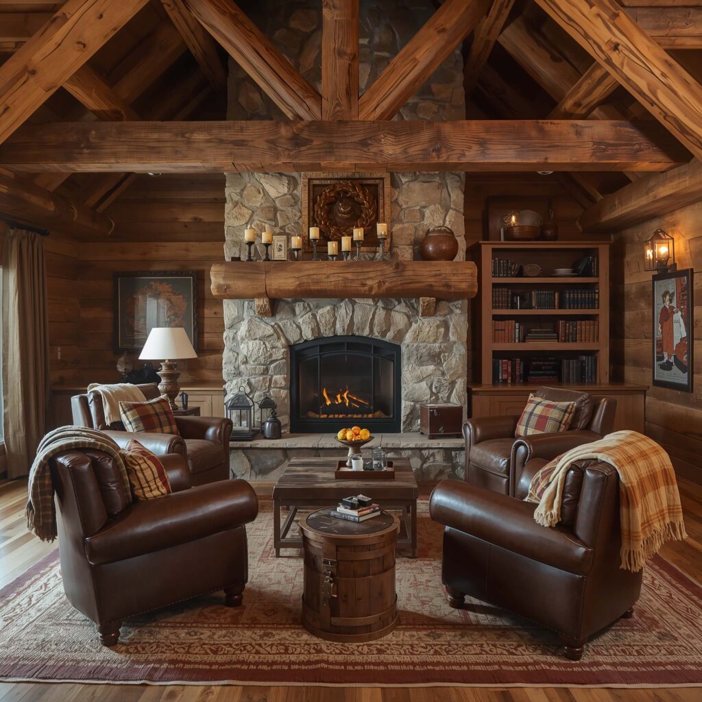 The color palette should feel earthy and warm: browns, tans, deep greens, and burnt oranges. Think autumn leaves and forest floors. A pop of plaid never hurts either – it’s basically the rustic style calling card.