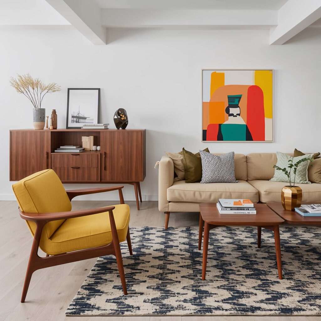 Don’t forget the accessories. Starburst clocks, geometric patterns, and abstract art complete the look. But please, resist the urge to make it a time capsule. Mix in contemporary pieces to keep it from feeling like a museum exhibit.