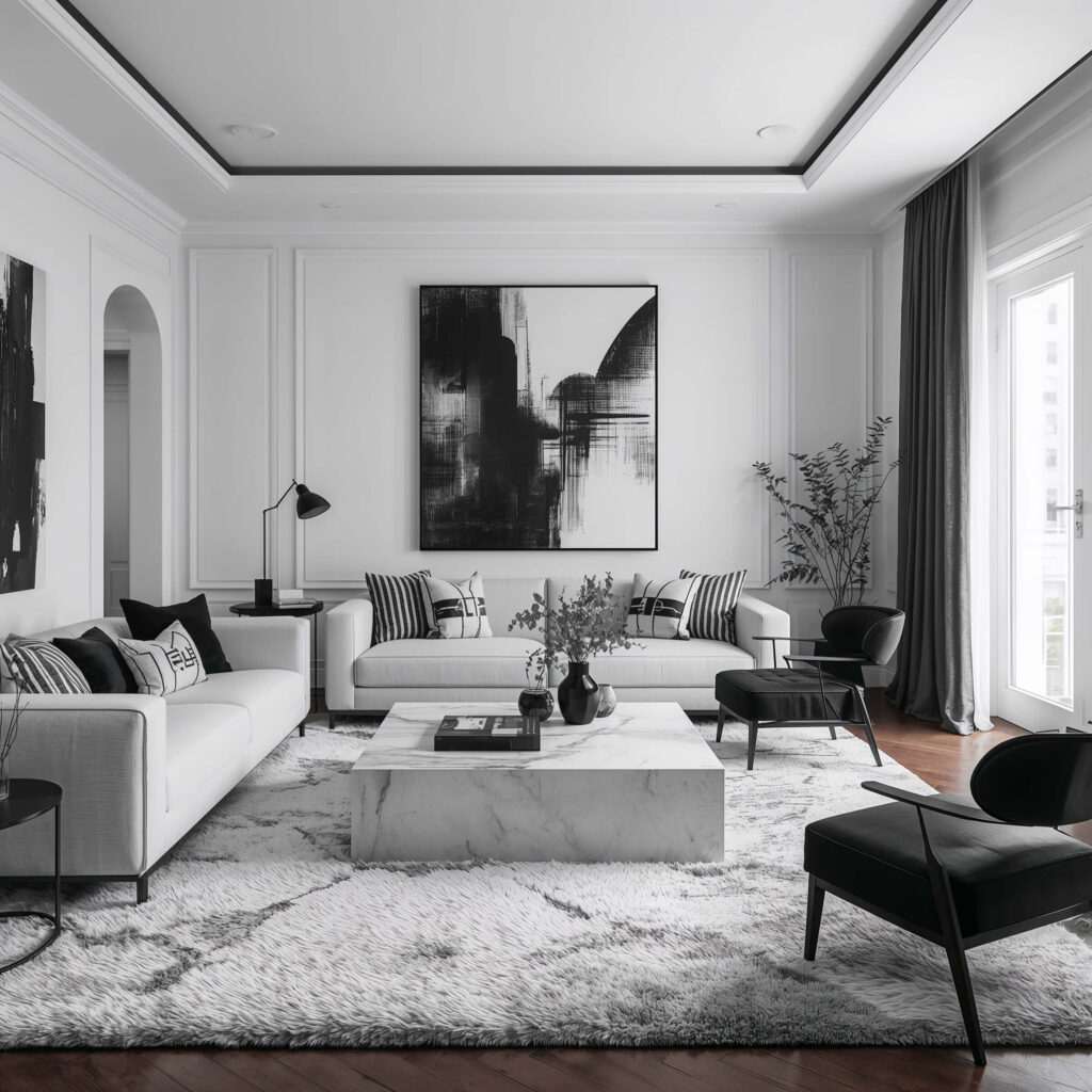 Black and white might seem basic, but executed well? It’s anything but. This classic combo creates drama without relying on color, which means texture and pattern do all the heavy lifting.