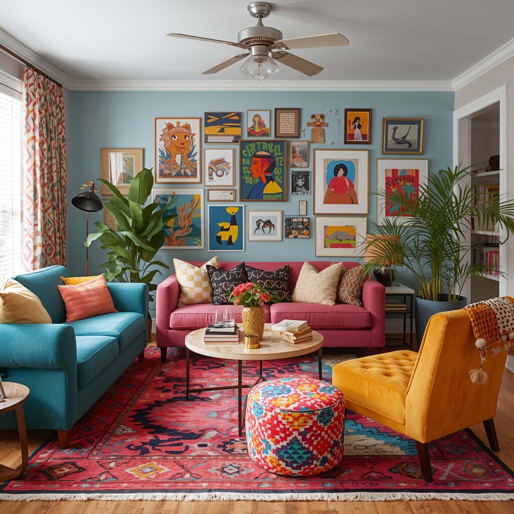 Don’t be afraid of color here. Bold jewel tones, unexpected combinations, patterns on patterns – if maximalism had a poster child, it would be eclectic style. Just remember to give the eye somewhere to rest. A neutral sofa can ground all those wild pillows and art pieces.