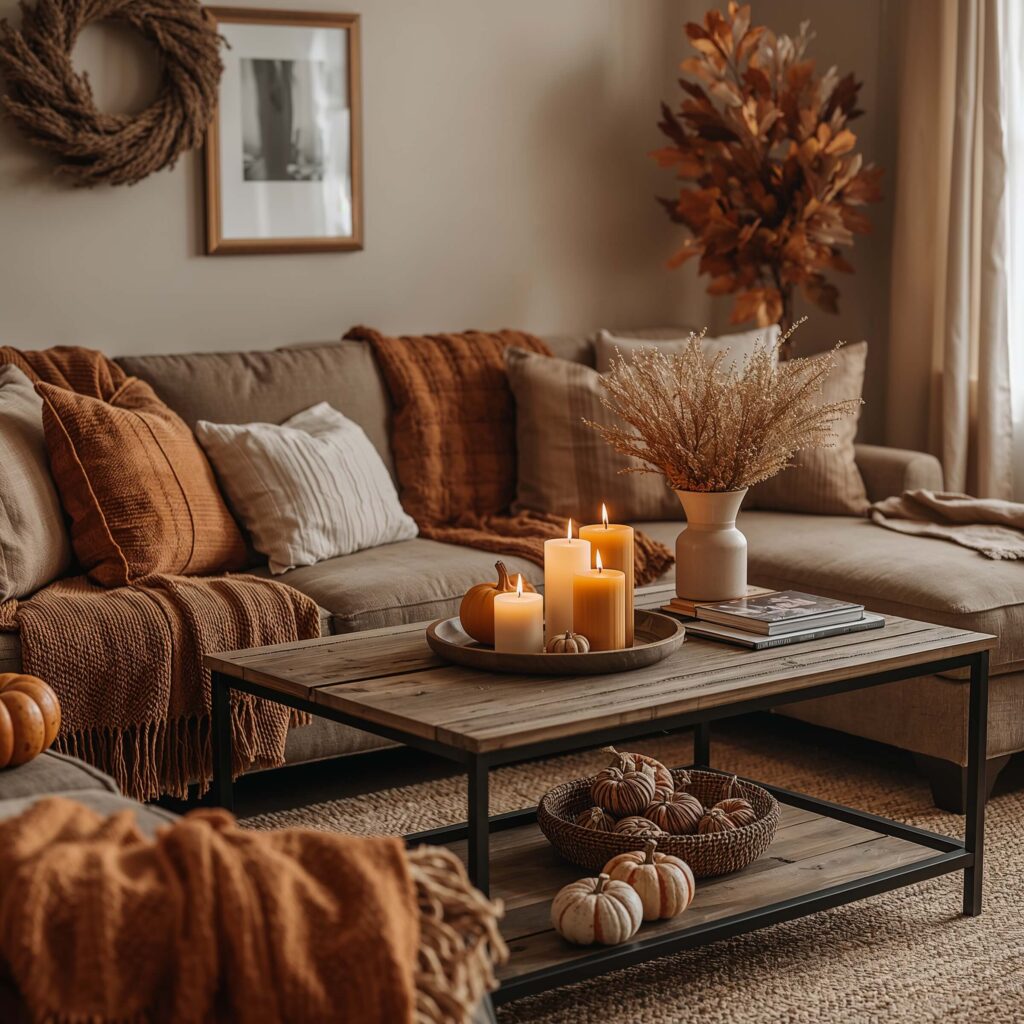 Fall and winter? Bring on the cozy. Layer in warm textures: chunky knits, faux fur, velvet pillows. Deeper colors like rust, burgundy, and forest green create that cocoon feeling we crave when it’s freezing outside. Don’t forget scented candles – nothing says fall like the smell of cinnamon and apples.