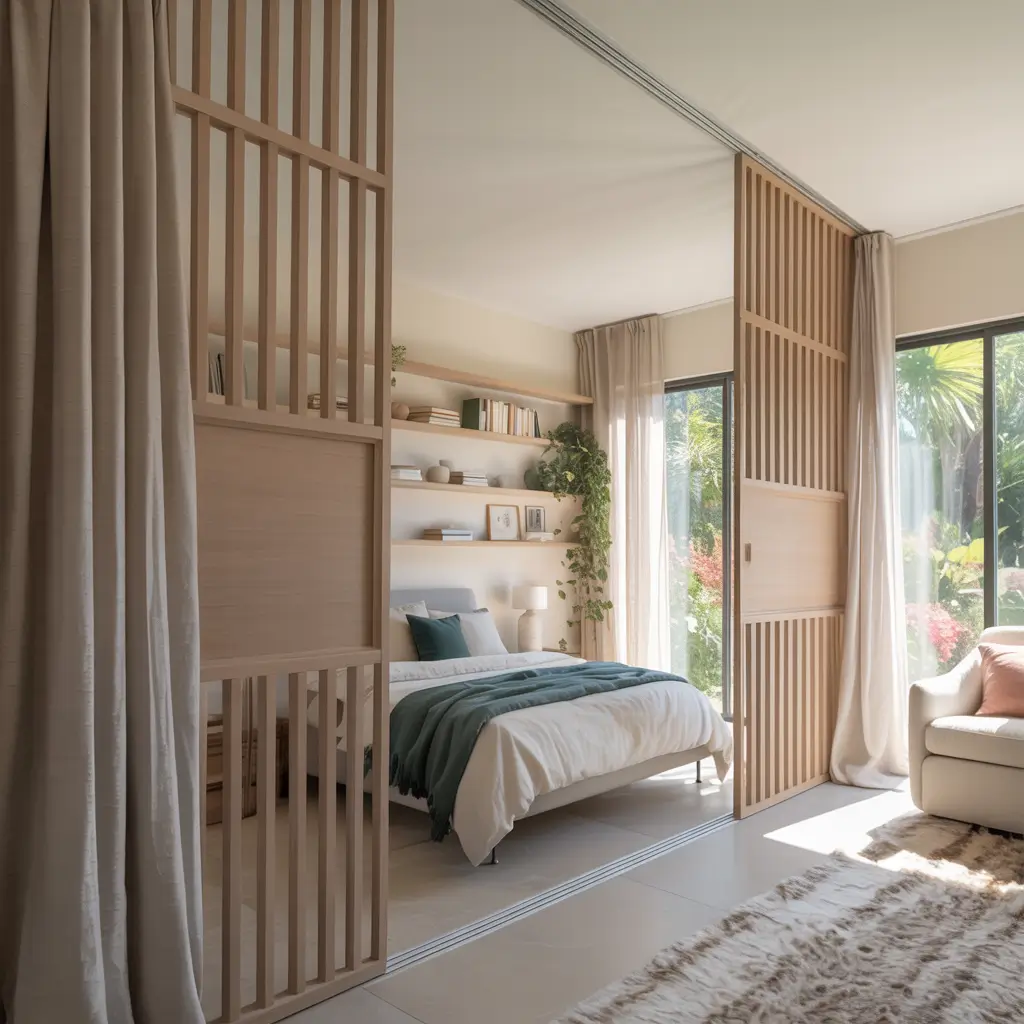 I resisted partitions for years, thinking they’d make my room feel smaller. Then I tried a ceiling-mounted curtain as a soft divider, and everything changed. The room actually feels bigger because each section has its own purpose.