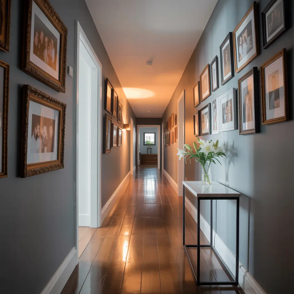 Who says museums get to have all the fun? Creating a gallery wall with family photos transforms your hallway into the most personal space in your home. And here’s the thing – long hallways are literally perfect for this because they give you that natural walking-through-a-gallery experience.
