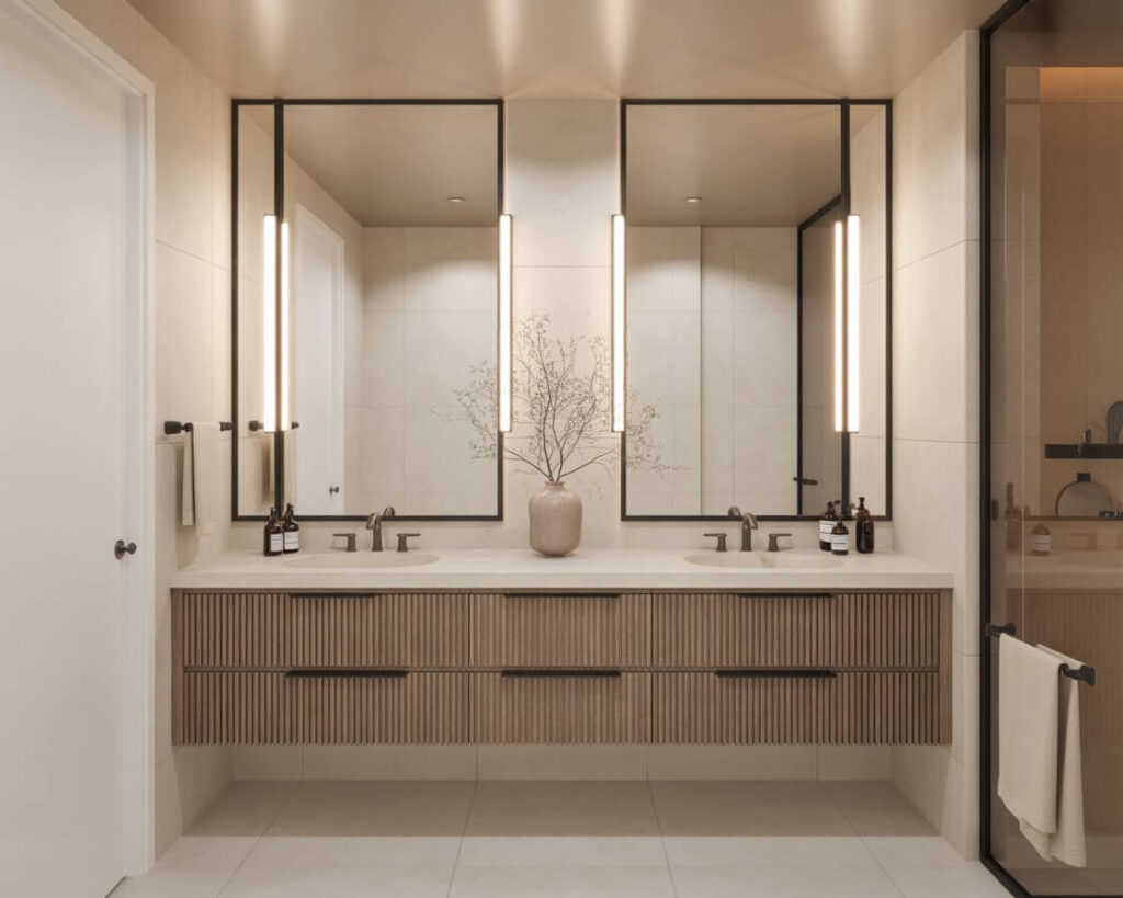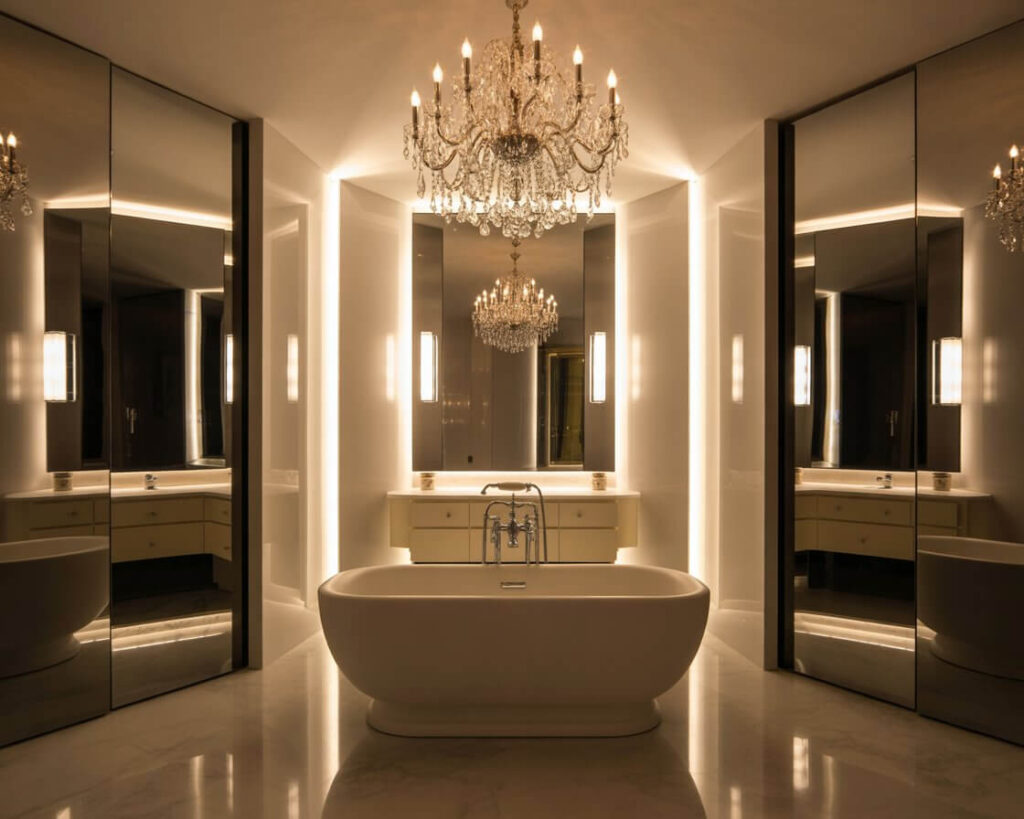 Think beyond just overhead lighting. Layered lighting creates ambiance and ensures you never have weird shadows while doing your makeup. I combine chandelier drama with practical vanity sconces and subtle LED strips under floating vanities.