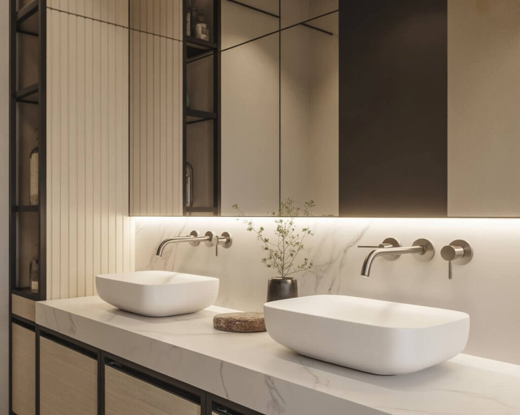 The extra counter space alone justifies the investment. No more knocking over each other’s products or playing Tetris with toiletries. Plus, resale value goes through the roof – buyers absolutely love double vanities.
