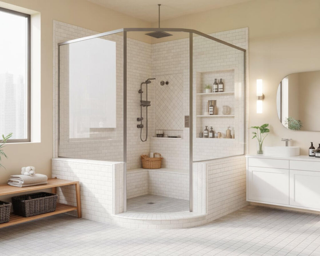 Goodbye, moldy shower curtain! Frameless glass enclosures make bathrooms feel twice as big while showcasing your beautiful tile work. I switched from a framed door to frameless, and the difference shocked me – suddenly my tiny bathroom felt like a spa.