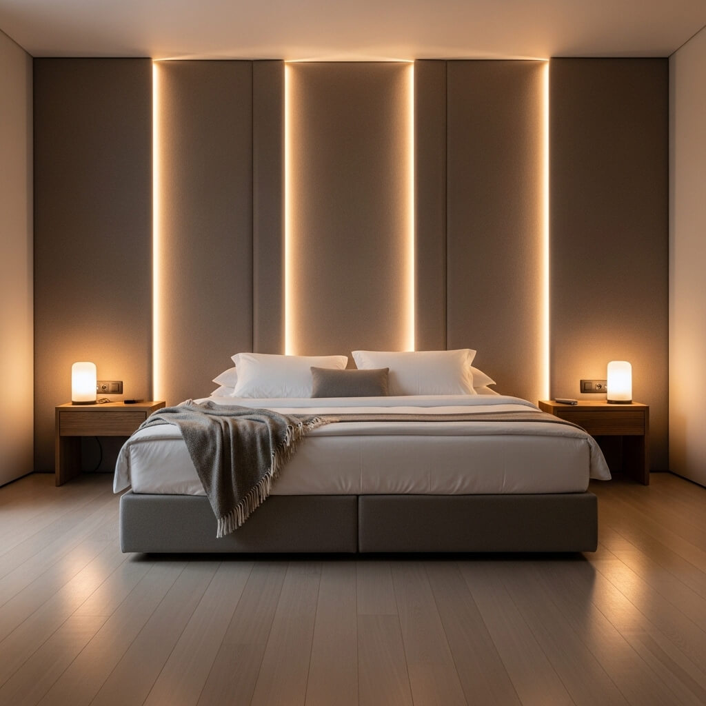 From a design perspective, this style works best with clean, contemporary aesthetics. Think minimalist bedding, architectural lines, and a restrained color palette. Let the lighting effect be the star!