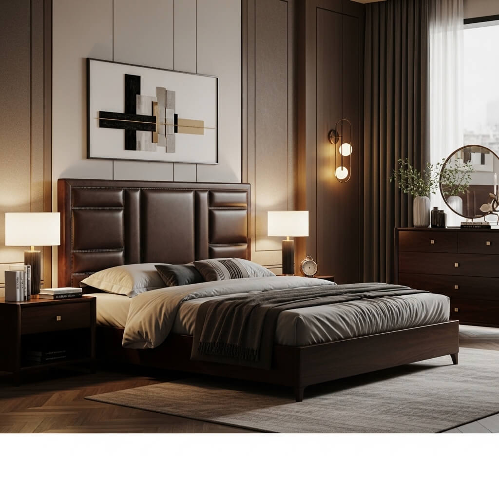 There’s something undeniably sophisticated about leather in interior design. It has this perfect balance of masculinity and elegance that few other materials can achieve. A high-end leather headboard with precise stitch detailing brings that luxury into your bedroom in the most stunning way.