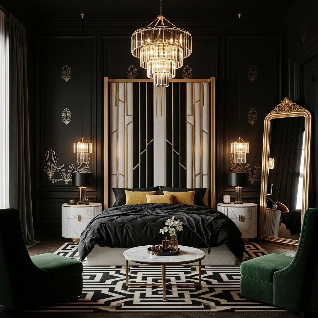 One thing to keep in mind with this style is that it works best when you commit to the theme without going overboard. Let the headboard be your statement piece, then complement it with simpler Art Deco-influenced accessories rather than competing patterns.