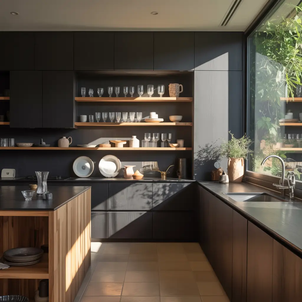 I recently saw a kitchen with black lower cabinets and walnut upper shelving, and it literally made me reconsider my entire life choices. The wood prevents the black from feeling too heavy while adding that organic texture that makes spaces feel lived-in.