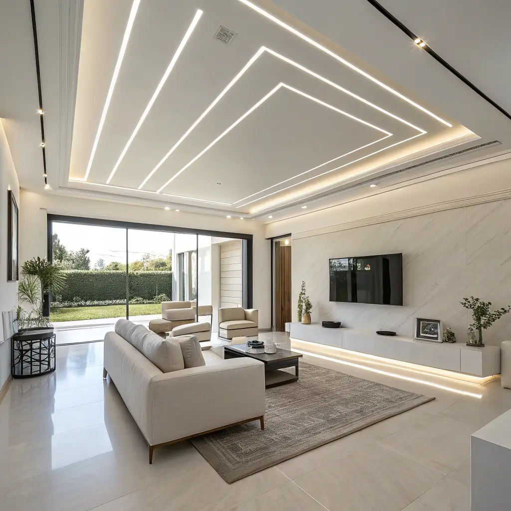 5. Minimalist Gypsum Ceiling with Linear LED Accents