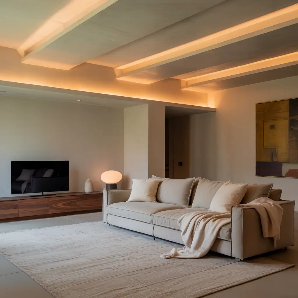Hide everything that can be hidden. All my electrical components, speakers, and even smoke detectors integrate seamlessly into the gypsum work. Nothing breaks the clean lines. This invisible integration is what separates luxury minimalism from basic emptiness.