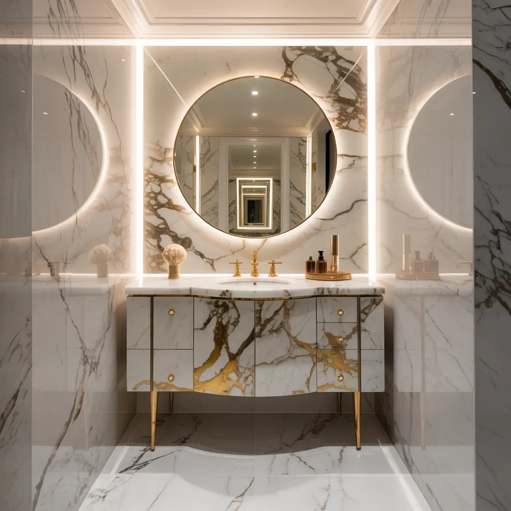 Whether you choose marble magnificence, vintage glamour, or modern minimalism, the key is committing fully to your vision.