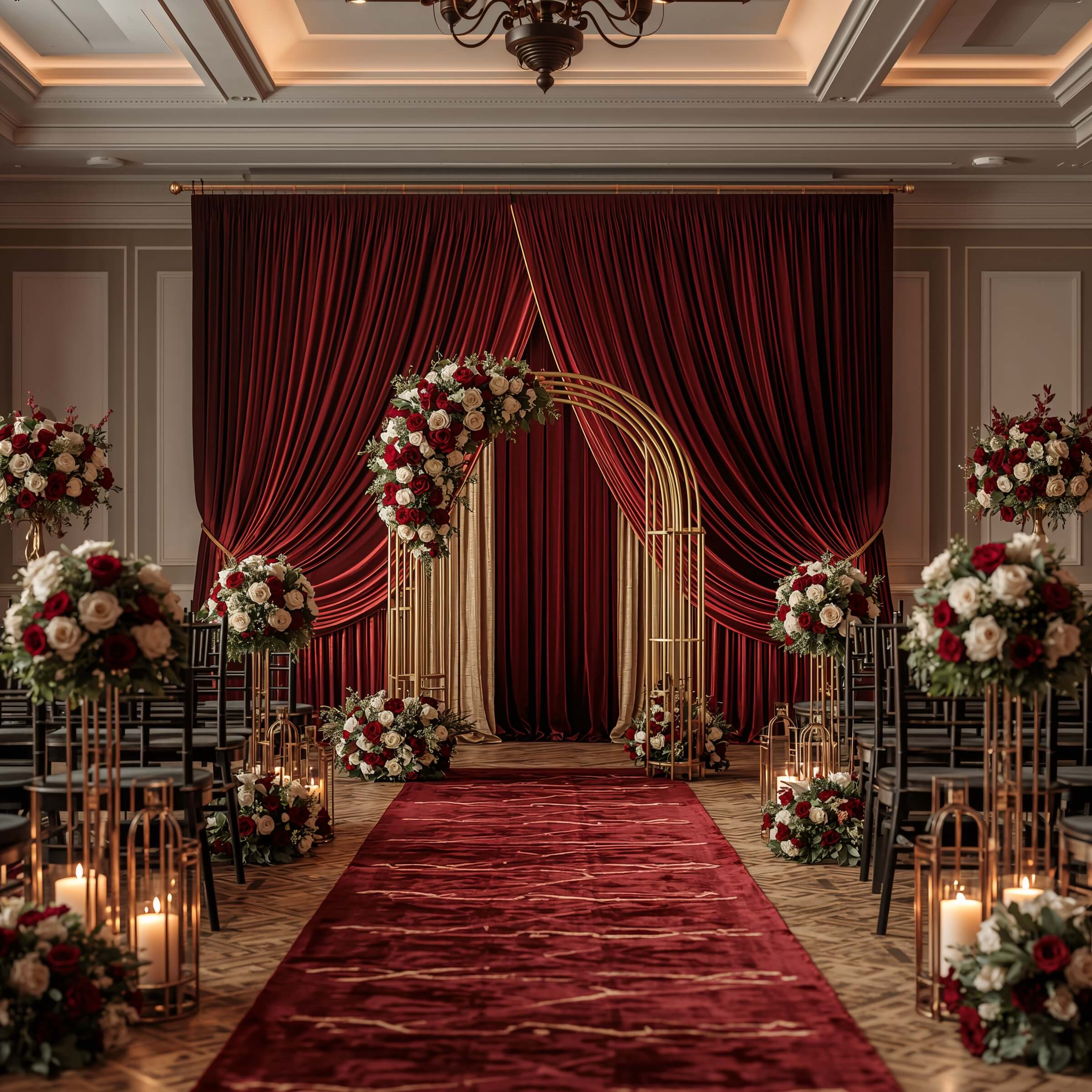 The secret sauce? Layer different lengths of velvet panels. Start with a full-length backdrop, then add shorter swags in front. This creates dimension that flat fabric just can’t achieve. And here’s a money-saving hack – rent theater curtains from local production companies. They’re often higher quality than wedding-specific rentals and cost way less.
