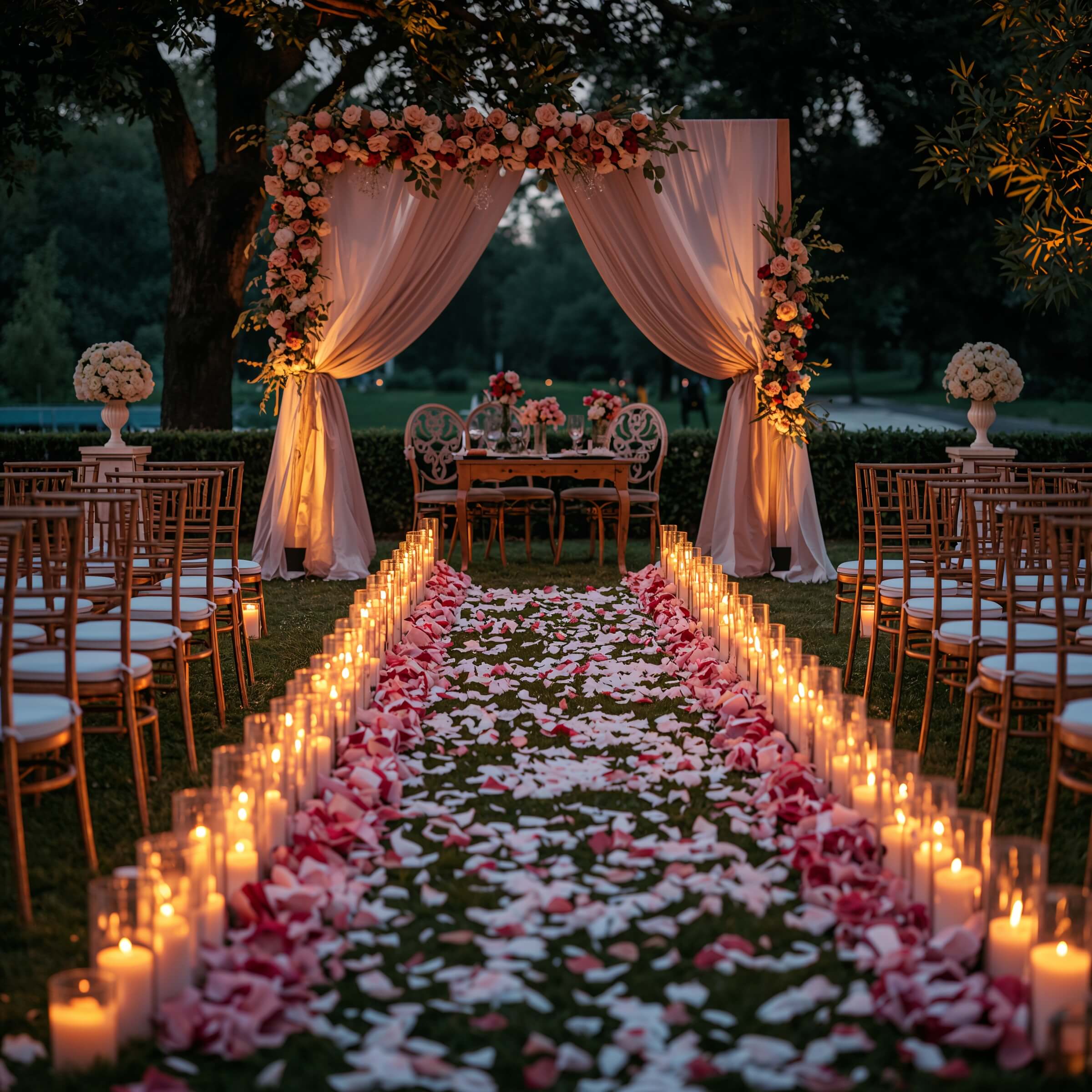 Who needs harsh lighting when you can have the soft, romantic glow of hundreds of candles lining your aisle? This idea transforms even the plainest venue into something magical. And before you worry about fire hazards (valid concern), LED candles have gotten so good that nobody can tell the difference from ten feet away.