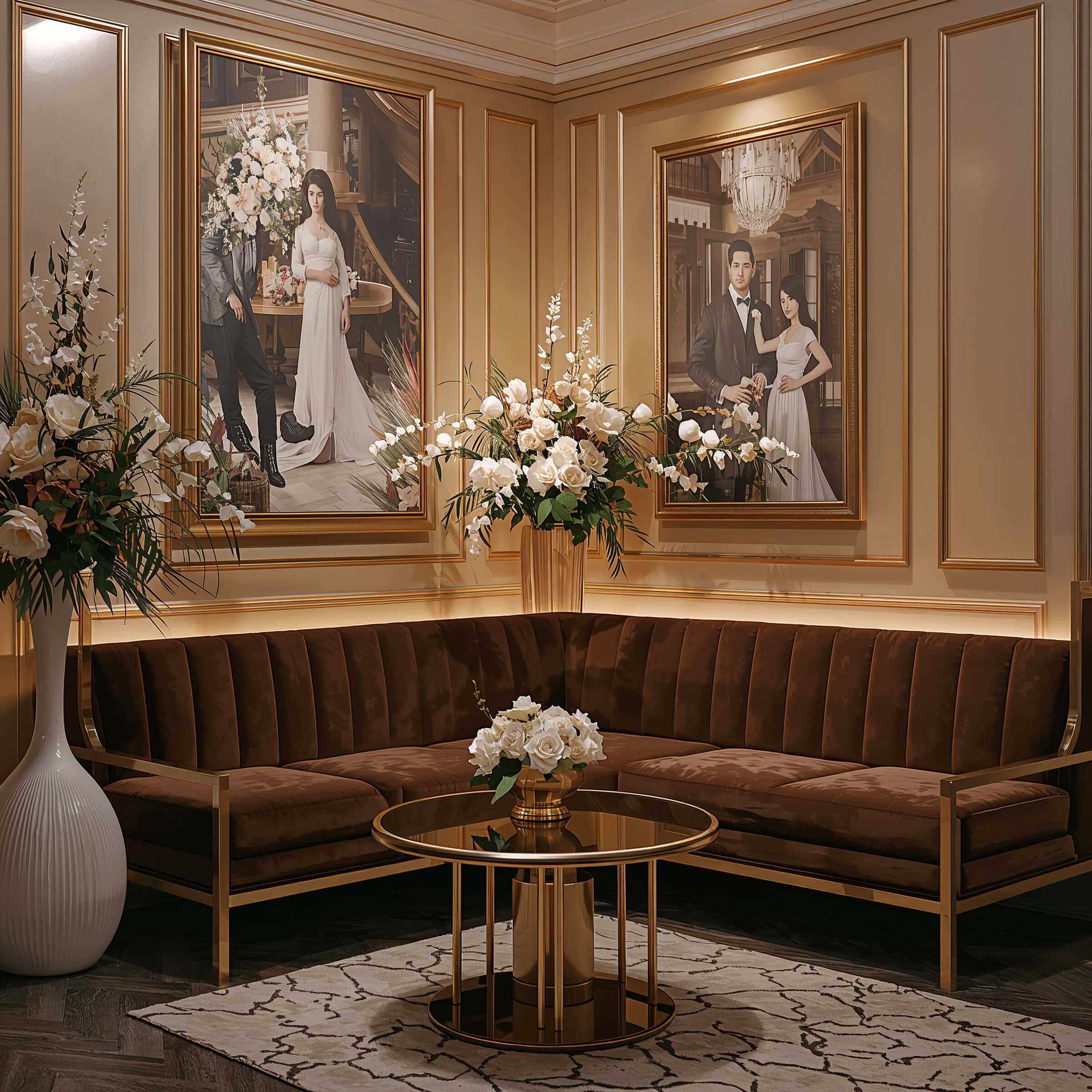 IMO, the secret to making these spaces work is creating distinct zones. Each lounge should feel like its own little world within your reception. Use rugs to define spaces and add metallic curtain backdrops for extra drama.